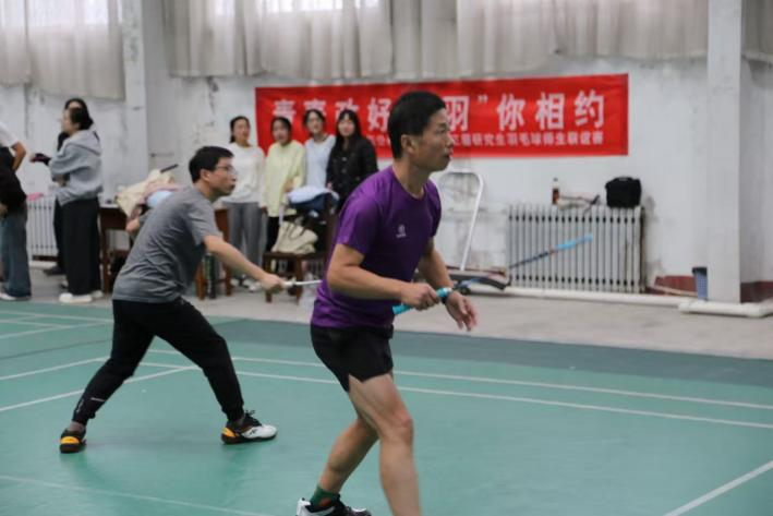 (通讯员:李超 高雅杰 摄影:李超)为进一步丰富师生课余文化生活,强健师生体魄,促进全面发展,10月19日,学院第三届研究生羽毛球师生联谊赛于学校体育馆成功举行。学院教师代表钟振洪、相福星两位老师与2024级、2025 级部分研究生共同组成参赛队伍参与本次比赛。
