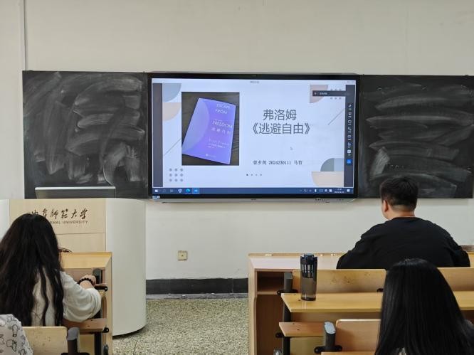 24级曾夕芮同学分享的是《逃避自由》,聚焦“不同时代下的自由”系统梳理了书中关于自由的论述,并结合现实案例区分积极自由与消极自由的本质差异,具体阐释了“如何实践真正的个人自由”。