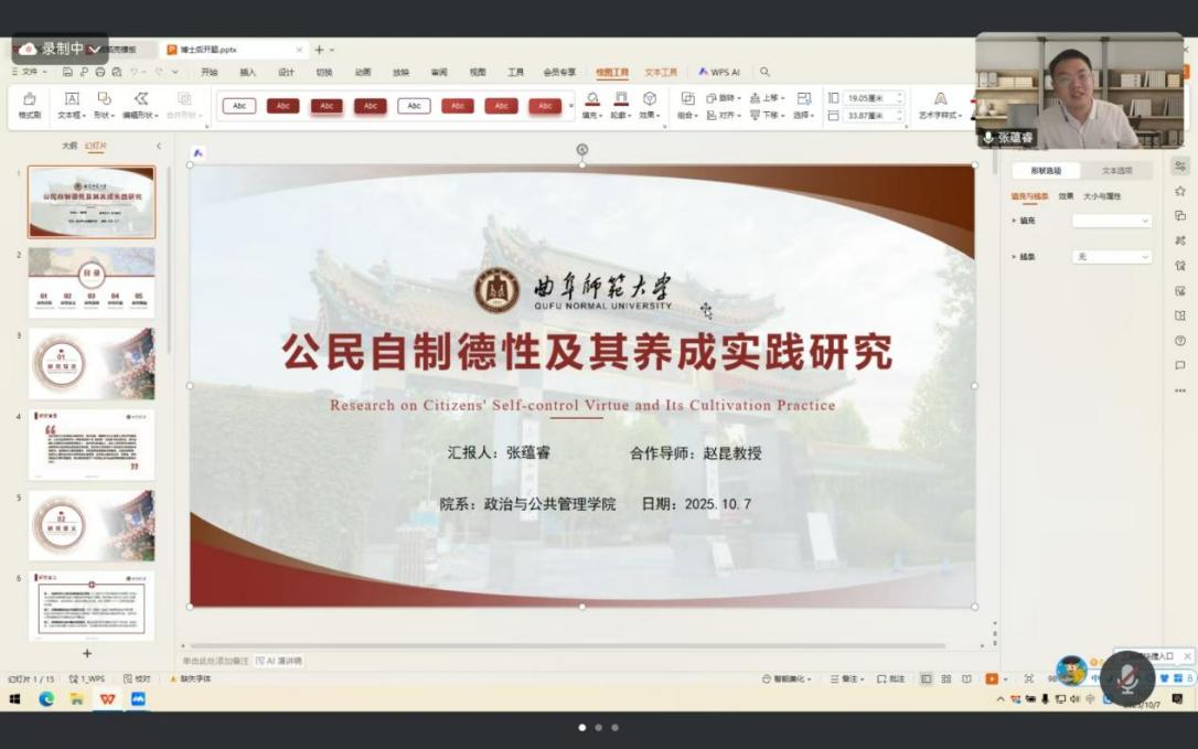 会议伊始,五位博士后依次就各自的研究课题进行汇报,详细阐述了研究背景、文献综述、研究方法、创新点及预期成果,内容涵盖“第二个结合”视域下的儒学转型、《礼记》养老思想与现代社会适应性、宋代《诗经》学对汉学的嬗变及其对理学的建构、《庄子》在俄罗斯的译介与接受、公民自制德性及其养成实践等多个研究领域。随后,委员会专家对各位博士后的开题报告逐一进行了细致点评,在肯定其研究价值与可行性的同时,就理论深度的挖掘、创新点的突出等方面提出了针对性建议。