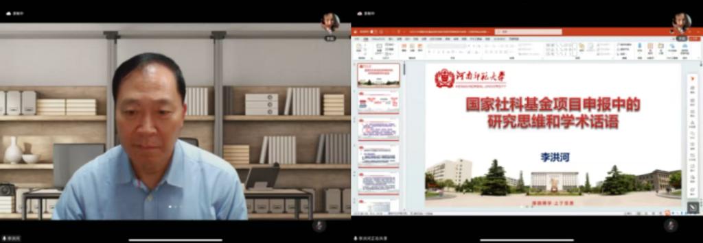 (通讯员:高雅杰 李超 摄影:李超)为助力学院教师精准把握国家社科基金申报规律,提升师生科研项目申报质量与成功率,11月5日,政治与公共管理学院“乾元沙龙”第十五期学术讲座于线上举行。河南师范大学政治与公共管理学院院长、博士研究生导师,中原千人计划——中原基础研究哲学社会科学领军人才李洪河教授为我院师生作题为《国家社科基金申报思维、方法与技巧》的主题报告,学院部分青年教师与研究生积极参加,肖文超教授主持本次讲座。