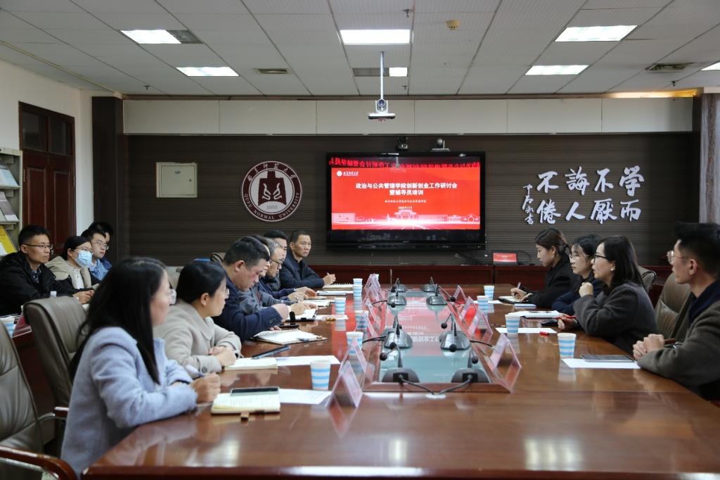 (通讯员:江百舸 摄影:艾齐)11月10日下午,政治与公共管理学院于JC909会议室召开创新创业工作研讨会暨辅导员培训会,特别邀请浙江工业大学生物工程学院党委副书记、纪委书记金鑫一行。学院党委书记卢瑞霞、副书记张忠凯、副院长林士俊、全体辅导员及部分专业教师代表参会。